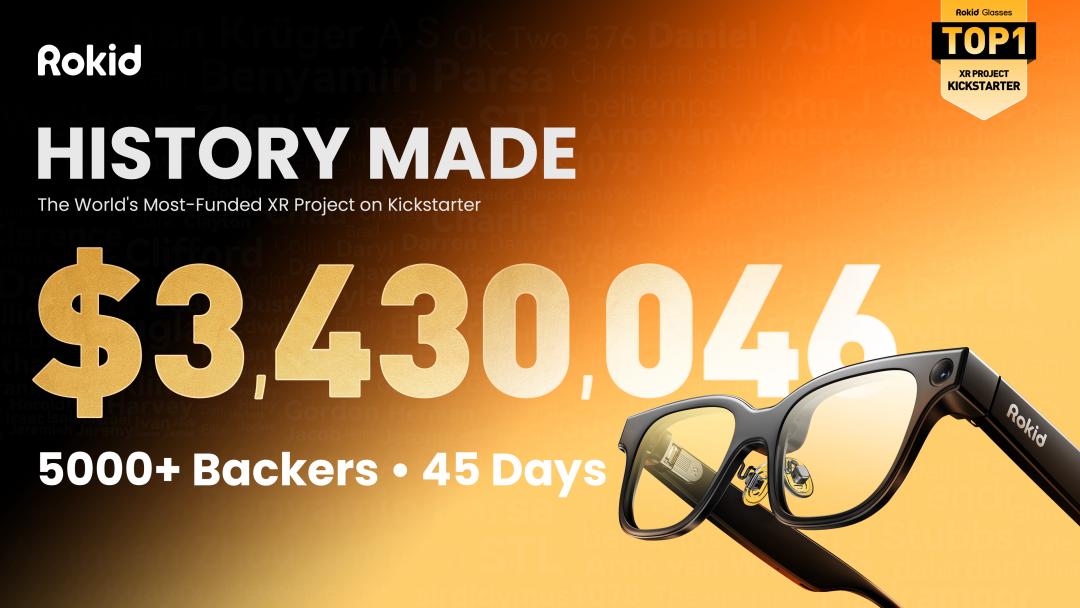 On August 26, the overseas press conference of Rokid Glasses was held in New York, and the global crowdfunding also started simultaneously on the Kickstarter platform. As of October 9, the crowdfunding amount has exceeded $3.4 million, breaking the historical record of the global XR industry and surpassing the highest records of all AI and AR glasses. Rokid is now racing against itself and constantly refreshing its own records. "The recognition of our products by the public has completely exceeded our previous expectations." Shao Huaqiang, the person in charge of Rokid's overseas business, told us.