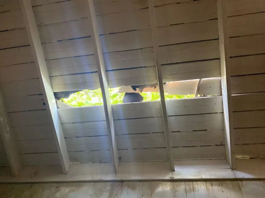 Li Mingda found that the ceiling of the supermarket warehouse had been pried open, so he had to install iron plates on the roof. Source: Li Mingda
