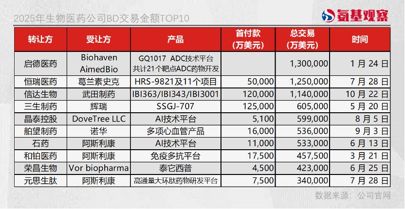 2025年BD总交易额第一被启德医药以130亿美元拿下。